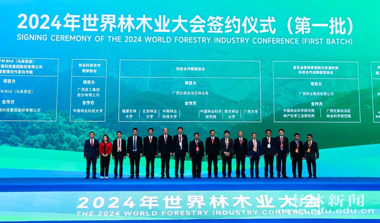 11月23日,由国家林业和草原局、广西壮族自治区人民政府主办的2024年世界林木业大会在广西南宁举办,国家林业和草原局关志鸥局长出席。我校副校长尹佟明代表学校参会,科技处、机械电子工程学院等单位相关负责人陪同。